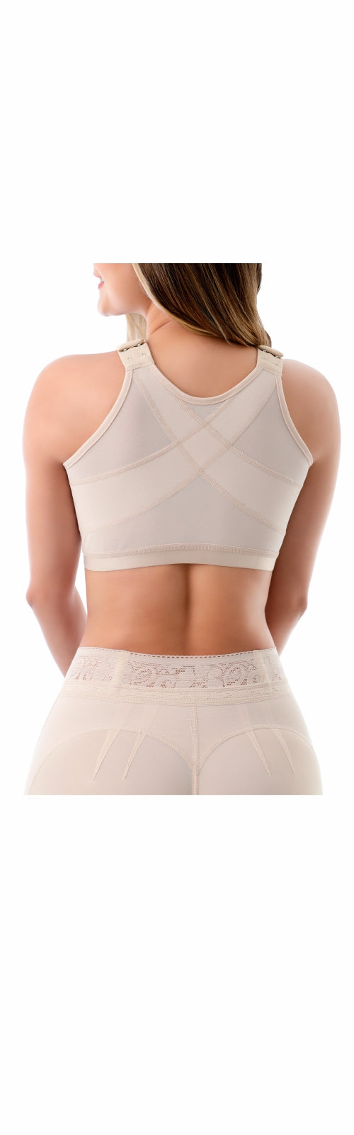 Nuestro Brassier Post-Operatorio (Ref. 213) diseñado por expertos favorece tu recuperación con control postural y realce de busto, brinda comodidad para uso diario.