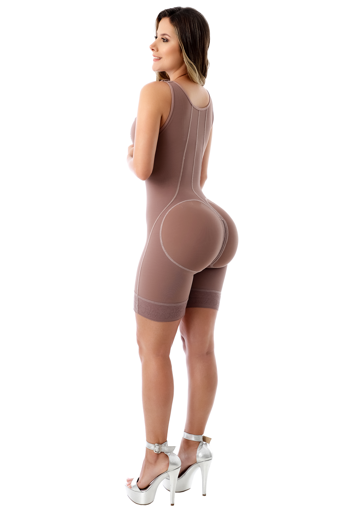 Nuestra Faja con reloj de arena en primera postura (Ref. 401) es diseñada para moldear y dar soporte después de una lipoescultura, procedimientos estéticos, post-parto o uso diario. Equilibrio perfecto entre compresión y comodidad.